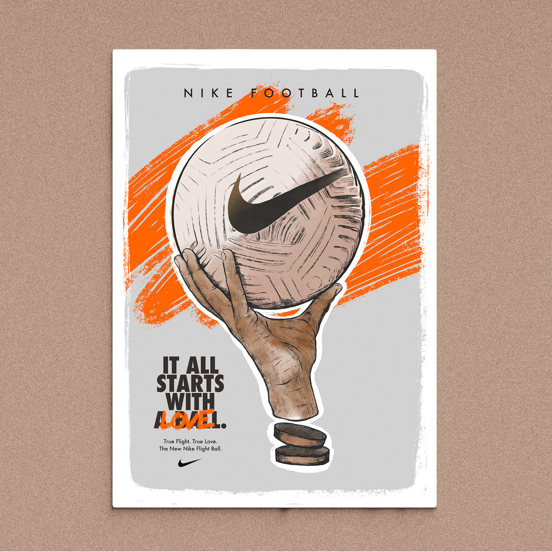Nike Football always played a major role in my love for the game. When I was a kid, I truly believed that popping up my collar would make me shoot as strongly as Cantona. I imagined that a delayed flight would turn out as the funniest day ever, as long as there was a ball to play with. But the ball was never just a ball, as mister Van Gaal once said. It blew demons up, it was x-rayed at the airport, it got rounder, it was covered in silver back in the cage and now it's something that will make us enjoy the beautiful game even more. The new Nike Flight. True Flight. True Love. This is a fictional campaign, sparked by the launch of a product that makes me go back to those days when my love for football began.
